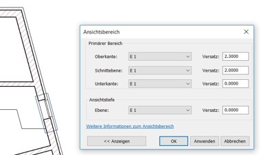 Was viele nicht wissen, dass man zusätzliche separate Ansichtsbereiche in den Grundriss einfügen kann ohne die Schnittebene von 1.20m zu verändern.