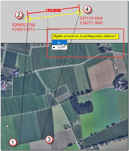Danach wird das Luftbild positioniert, skaliert und gedreht