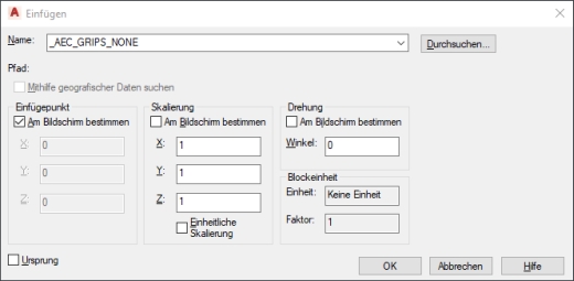 Mit AutoCAD Architecture Version 2020 wurde der Dialog zum Einfügen von Blockreferenzen überarbeitet und erweitert. Die Möglichkeit alternativ auch weiterhin den alten Befehlsdialog zu verwenden ist ein oft geäußerter Kundenwunsch.