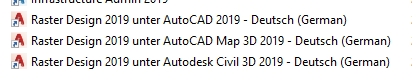Nach der Installation stehen entsprechende Programmverknüpfungen für das Verwenden des RasterDesign auf dem Desktop zur Verfügung, wie z.B. hier für AutoCAD, AutoCAD Map 3D und AutoCAD Civil 3D