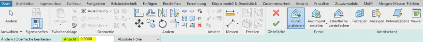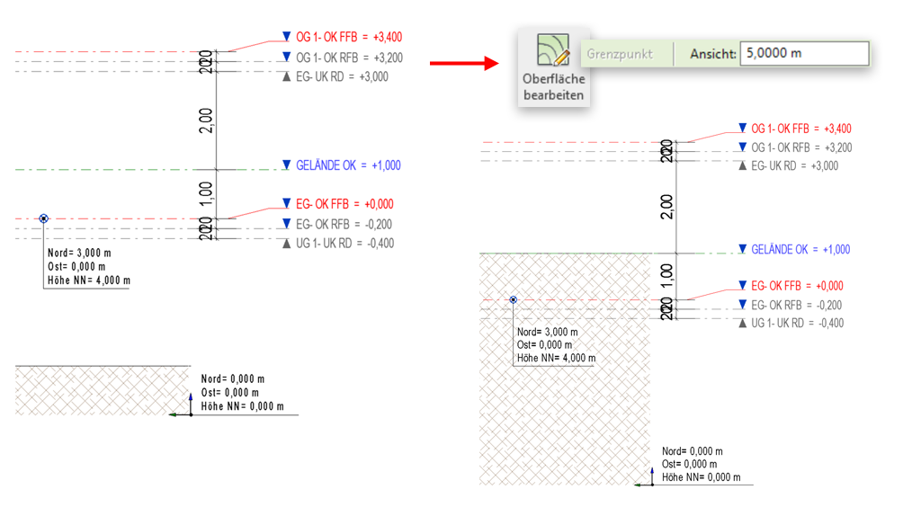 Abschließend können die Höhen der Geländepunkte in Abhängigkeit der Ebene EG OK FFB angepasst werden.