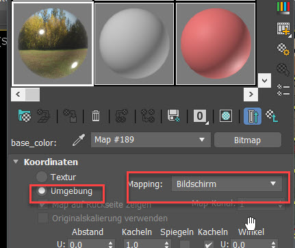 Ändern Sie bei „Koordinaten“ auf „Umgebung“ und das Mapping auf „Bildschirm“ um.