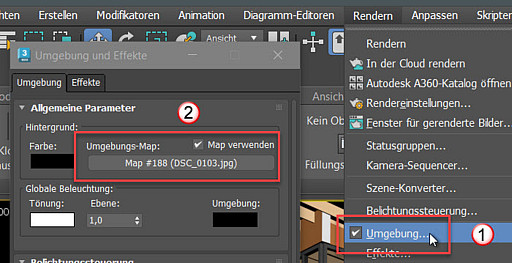 Rufen Sie nun den „Umgebung“ Dialog aus und wählen als Umgebungs-Map