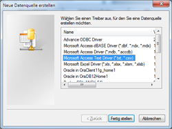 Klicken Sie auf die Schaltfläche Hinzufügen. Es erscheint ein Assistent, über den Sie neue Datenquellen einrichten können. Markieren Sie den Provider für Microsoft Access Textdateien und klicken auf Fertigstellen.