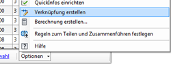 Am unteren Rand der Datentabelle finden Sie dann eine Schaltfläche Optionen, wohinter sich ein Kontextmenü verbirgt. Dort starten Sie den Befehl Verknüpfung erstellen. |