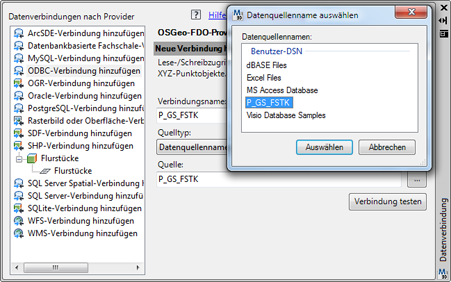 - Stellen Sie die FDO-Verbindung zu Ihrer ESRI-Shape-Datenquelle her, die Sie mit den Informationen der Access-Datenbank verknüpfen möchten.