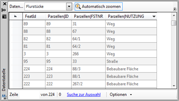 - Öffnen Sie die Tabellen-Ansicht der ESRI-Shape-Datenquelle in der Darstellungsverwaltung im AutoCAD-Map-Aufgabenfenster.