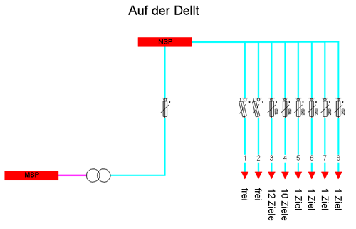 - Statische Beschriftung "1 Ziel", wenn ein Anschluss versorgt wird