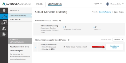 Cloudpunkte können über den Autodesk-Account erworben werden: