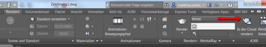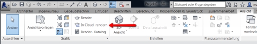 Cloudrenderings können direkt aus den Programmen aufgerufen werden. Zu finden ist der zugehörige Befehl "In der Cloud rendern" in der Multifunktionsleiste dort, wo auch die lokalen Renderbefehle angeordnet sind.