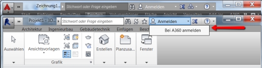 Um Zugriff auf Autodesk A360 zu haben, muß der Anwender dort mit seinen Autodesk-Account-Zugangsdaten angemeldet sein.